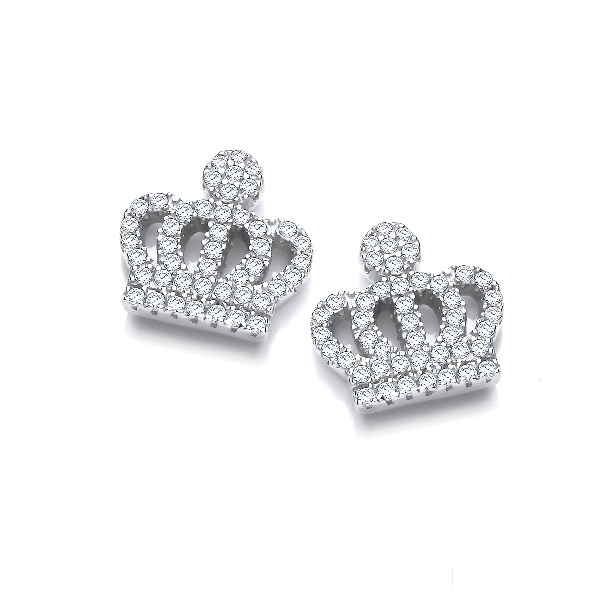 Sterling silver Crown shaped stud earrings set with cubic zirconia stones