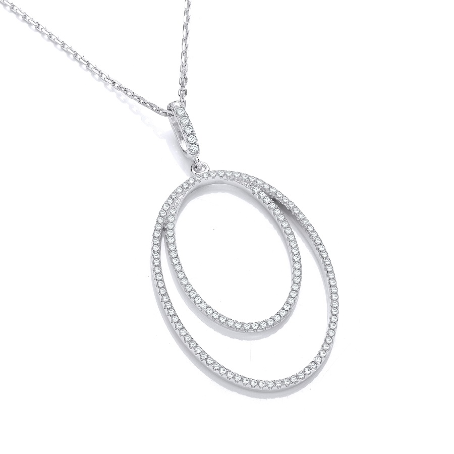 Micro Pave’ Oval Double Row Cz Pendant with 18″ Chain