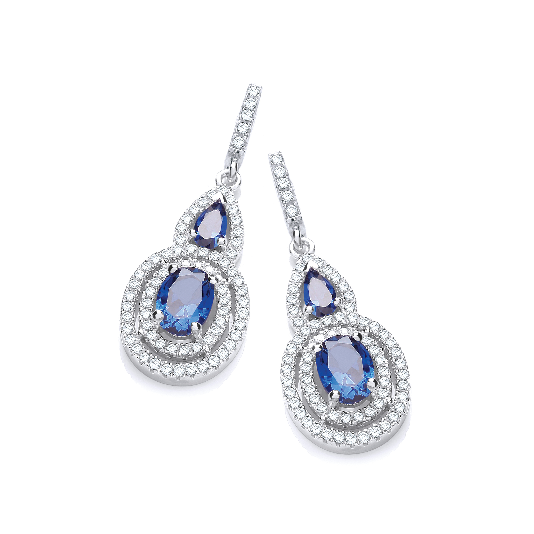 Silver Micro Pave’ Sapphire & White CZ Drop Earrings