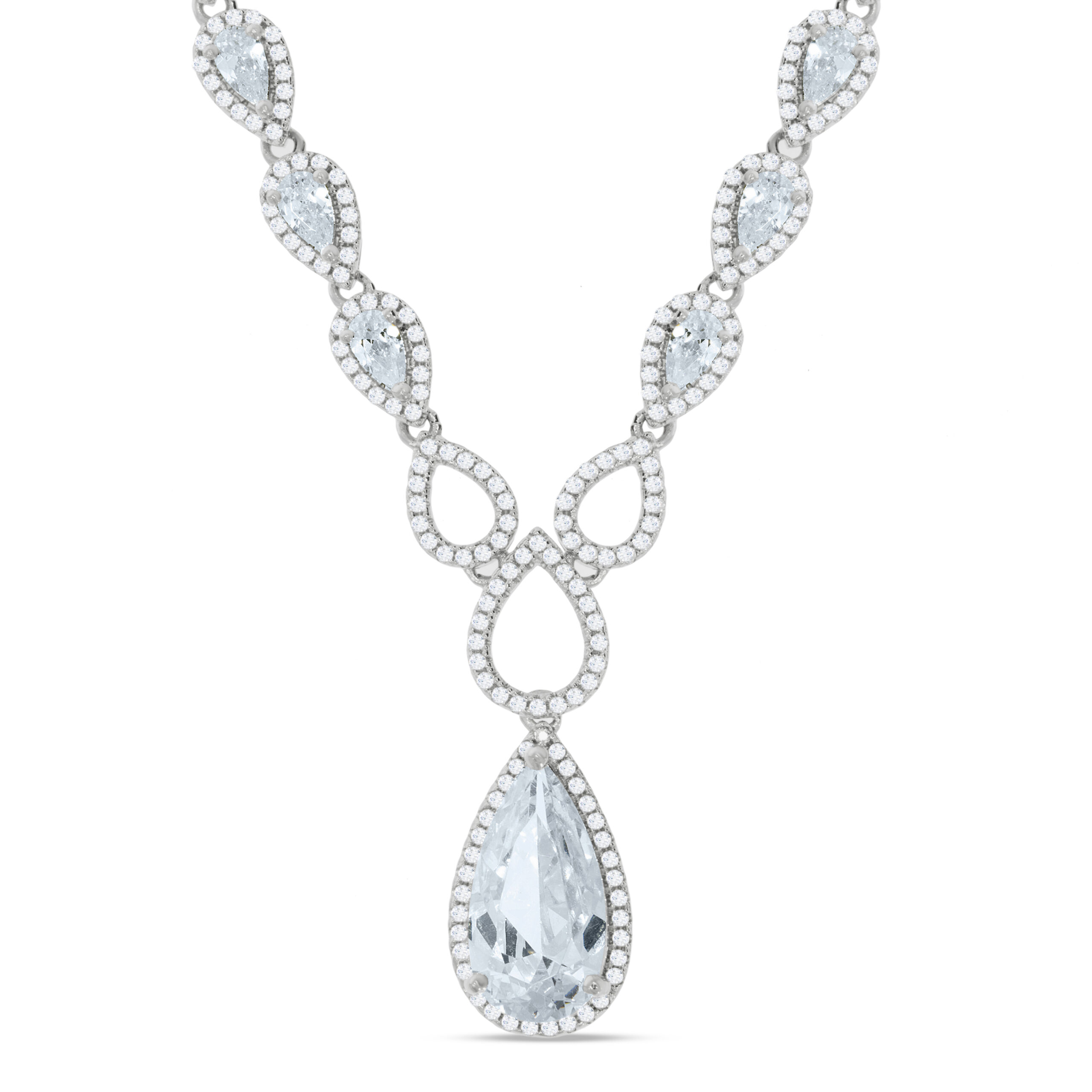 Silver Pear Shaped Drop Set Clear Cz’s Necklace 18″