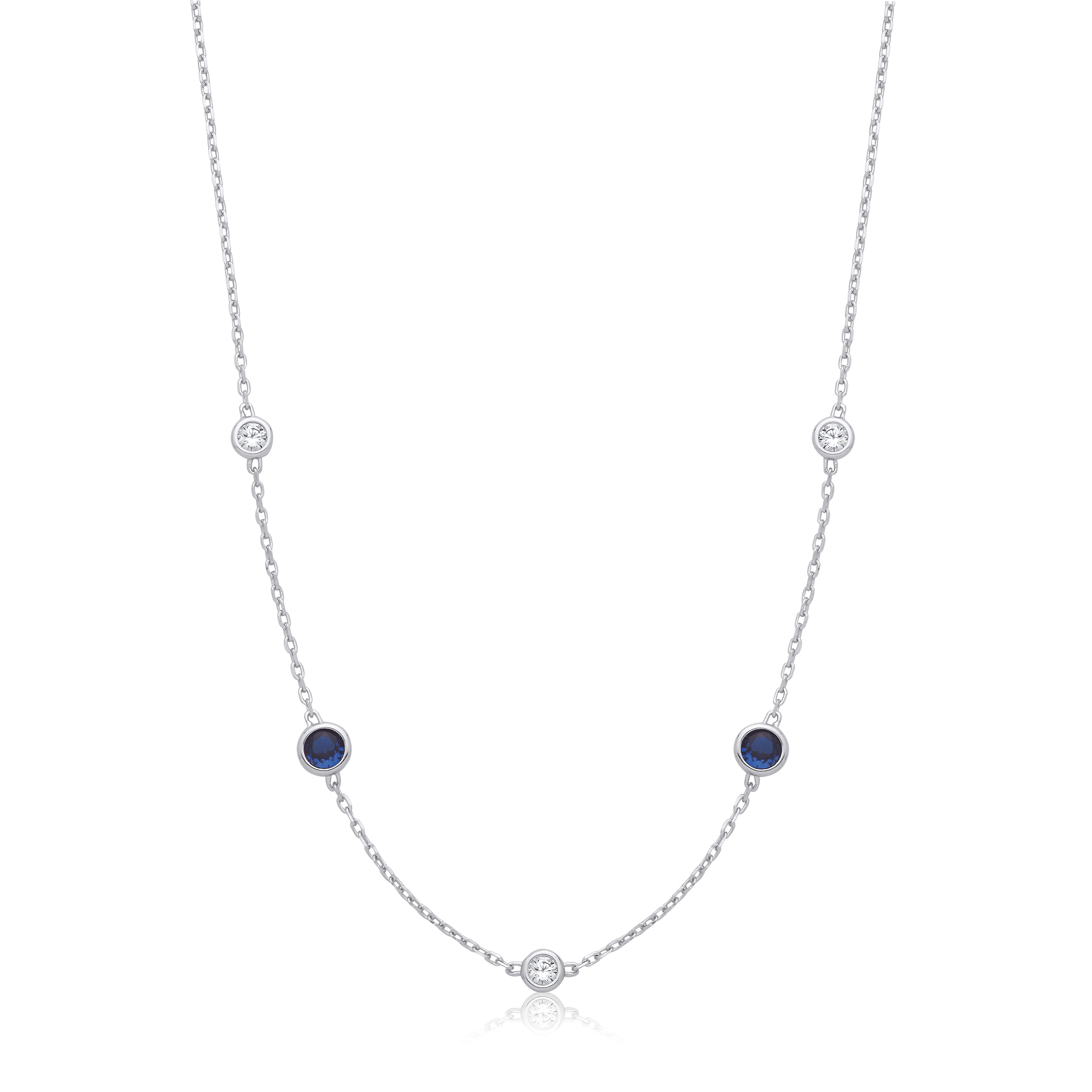 Silver Rubover 5 Blue & Clear Cz’s Necklace 18″