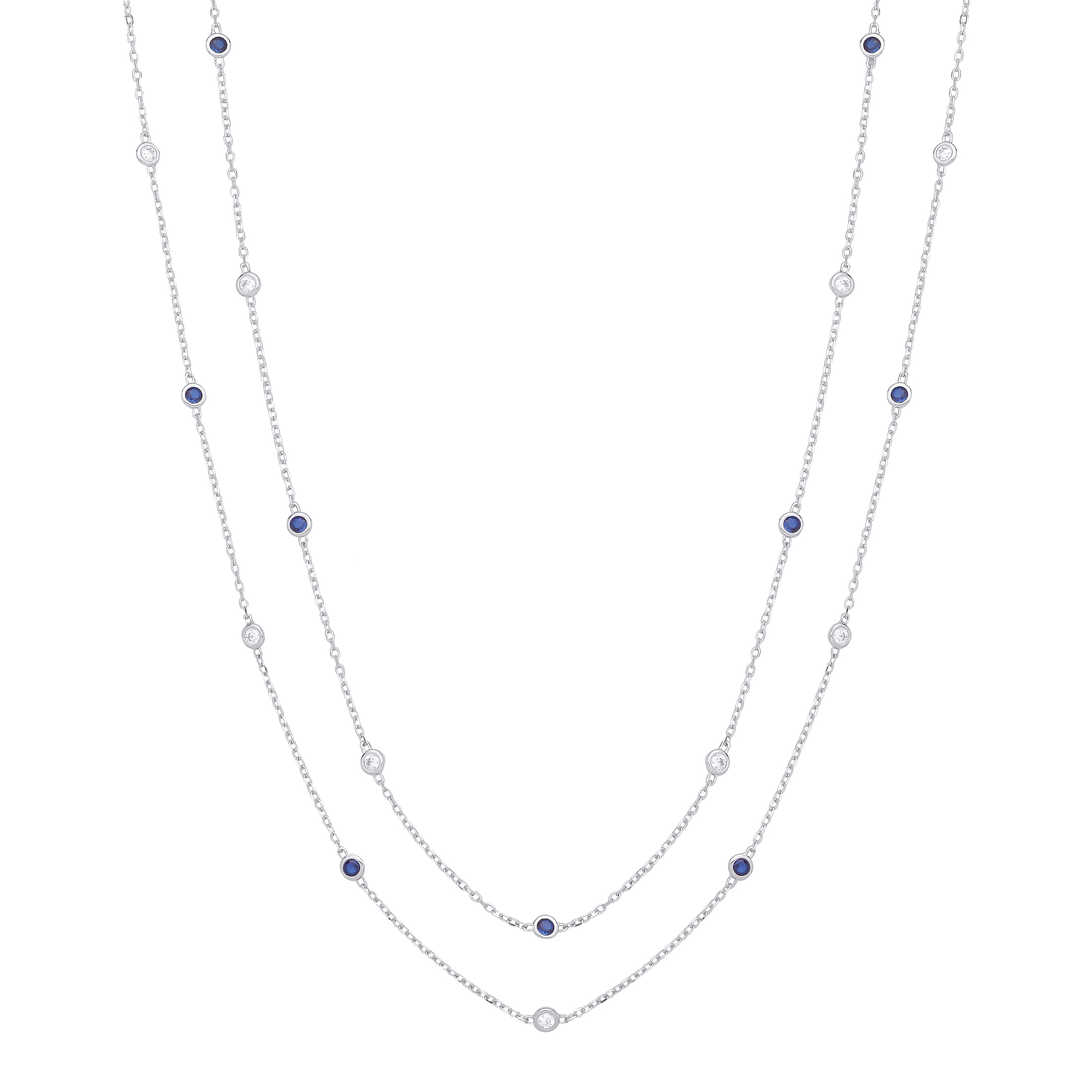 Silver Rubover Blue & Clear Cz’s Necklace