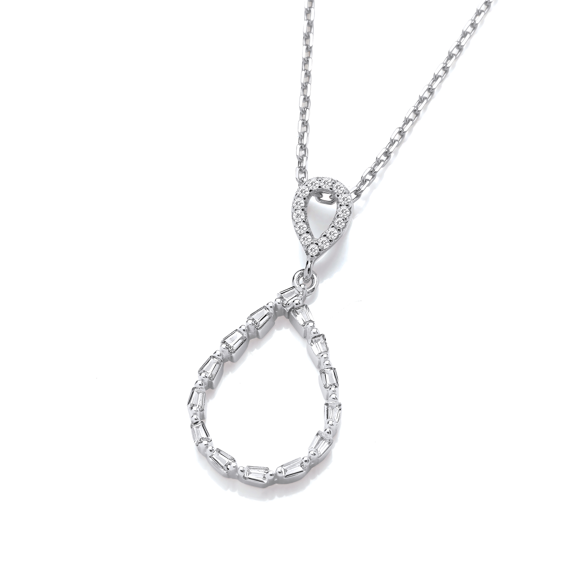 Teardrop Baguette CZs Silver Pendant with Chain quantity